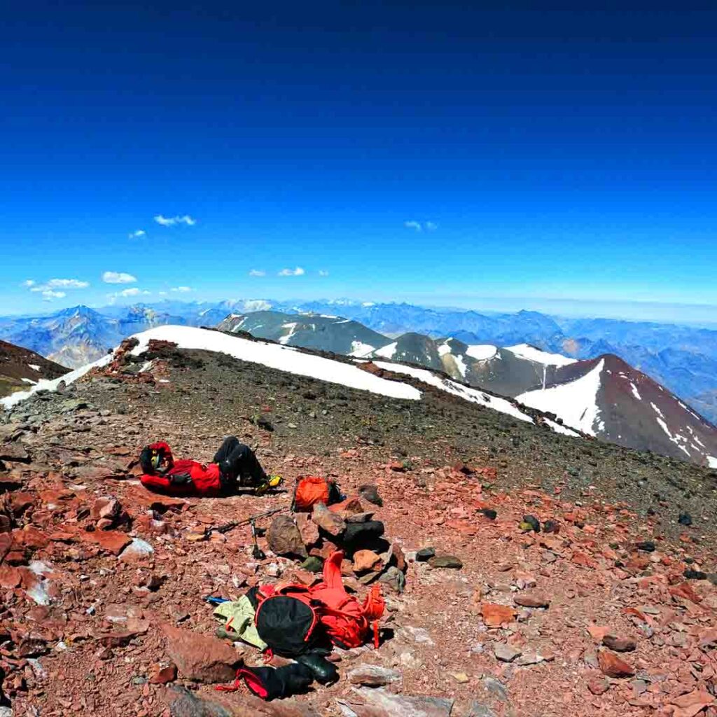 Rodrigo y Juan Manuel decidieron bajar ese mismo día al campamento de los 4.250 msnm. Nosotros optamos por quedarnos, así que fuimos a buscar agua antes de que cayera la noche mirando de reojo hacia la cumbre que recibía los últimos reflejos del sol y nos reímos al recordar lo vivido, – ¡Estuvo bueno!, me comentó Eduardo, a lo que asentí con todo entusiasmo y una sonrisa.
