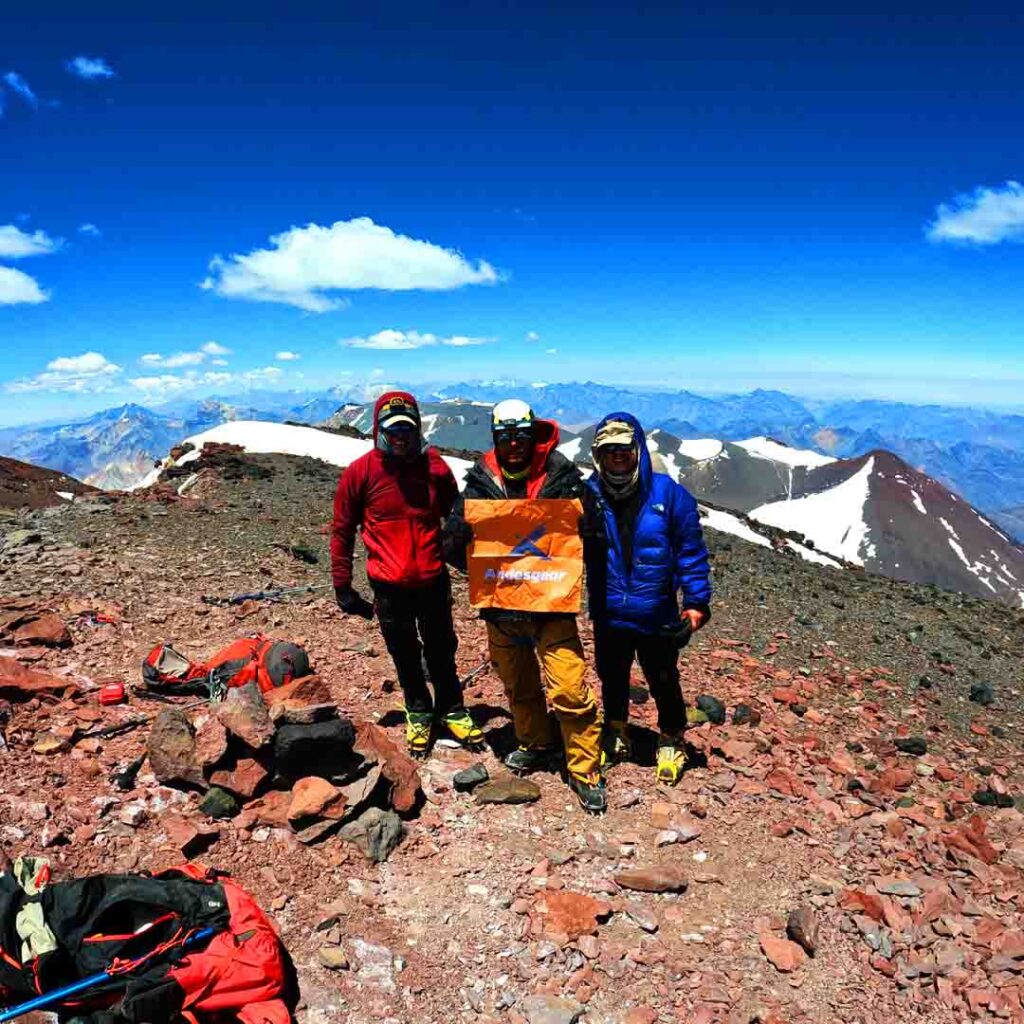 Con los ánimos distendidos luego de llegar completos al campamento, Juan Manuel se puso un polerón con un logo que me fue familiar. Teníamos amigos en común: Carlos Espinosa, con quien ellos preparaban un viaje al Himalaya para ascender el Broad Peak (8.051msnm) para el 2022 (Juan Manuel coronó su cumbre en julio del 2022), mientras que yo hacía lo mismo, pero para el Gasherbrum II (8.035 msnm) en 2023 (ochomiles.cl).