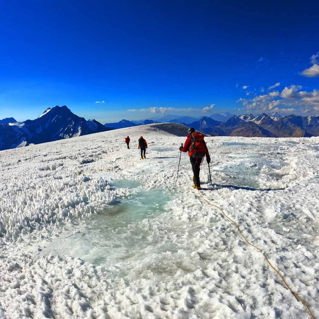 Caminamos con rapidez sin importar si parte de nuestras botas desaparecía en la nieve. Por fin en tierra nos fundimos en un abrazo fraterno con el equipo, contentos de haber llegado sin novedades al campamento alto.