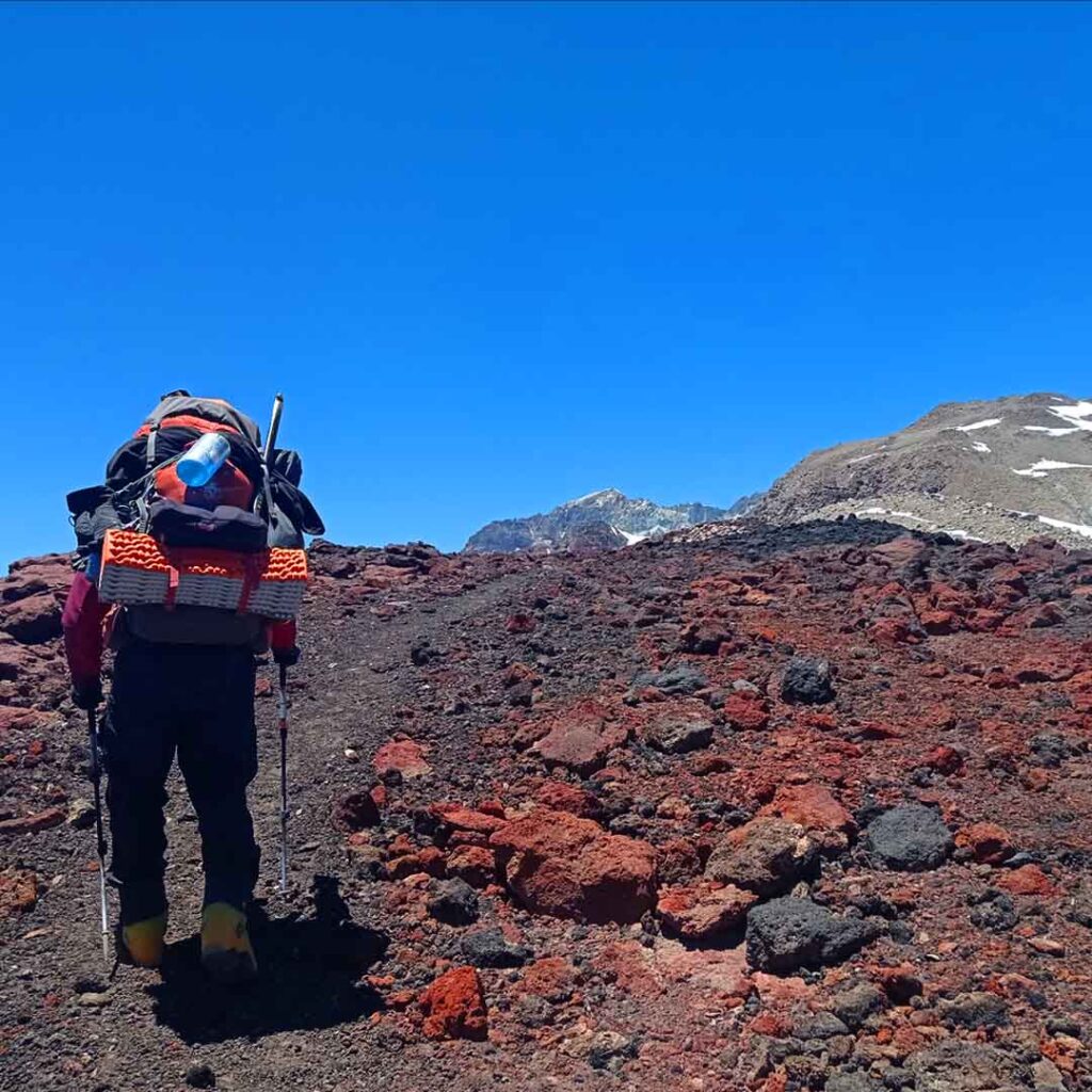 Nos levantamos temprano para preparar nuestro equipo y continuar hacia los campamentos superiores. La meta era saltarnos el campamento intermedio que habitualmente se hace a los 4.250 msnm, para intentar llegar al de 4.900 msnm durante el segundo día y así acortar la expedición.