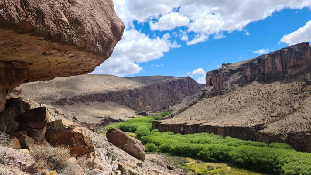 Hace ya algunos años se construyó ahí un Centro de Interpretación que da inicio a un recorrido que bordea al río desde las alturas y que nos conduce a la Cueva de las Manos.