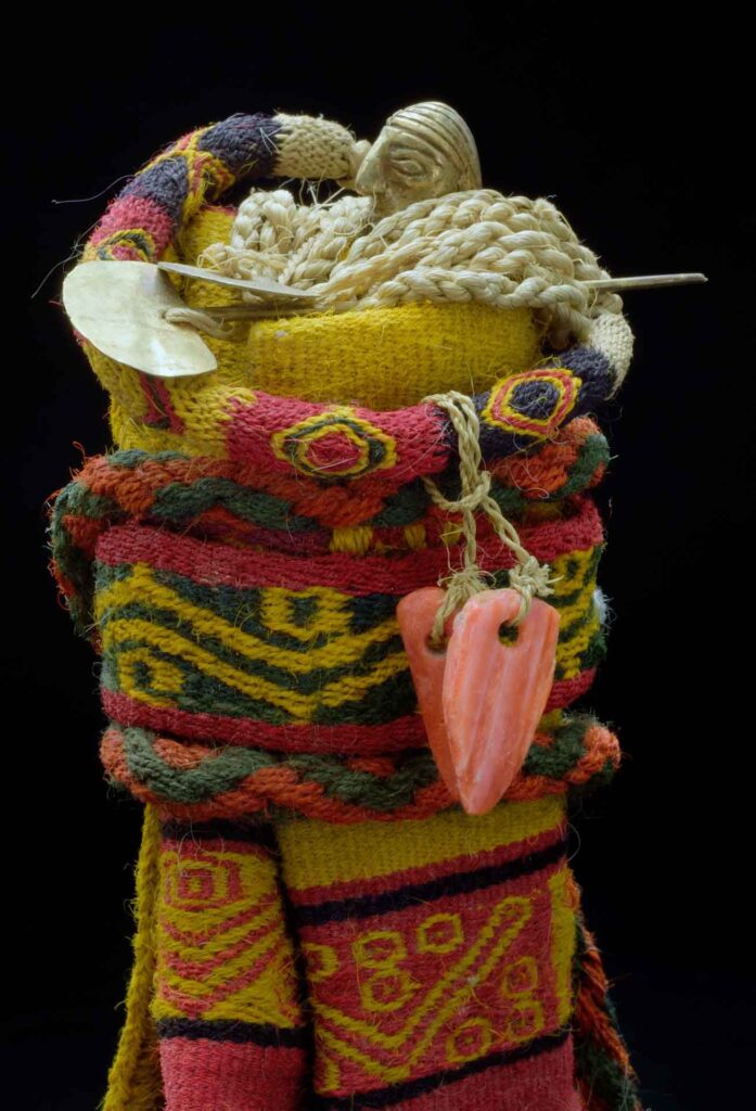Piezas textiles que acompañaron la vestimenta de los Niños, cerámicas y estatuillas pequeñas hechas de oro, plata y una concha marina de color rojizo, llamada spondylus prínceps, las cuales corresponden a formas delicadas de representación de llamas, hombres y mujeres. Todos hechos con rasgos únicos y vestimentas tejidas con maestría. Dando cuenta del alto valor simbólico de las ofrendas.